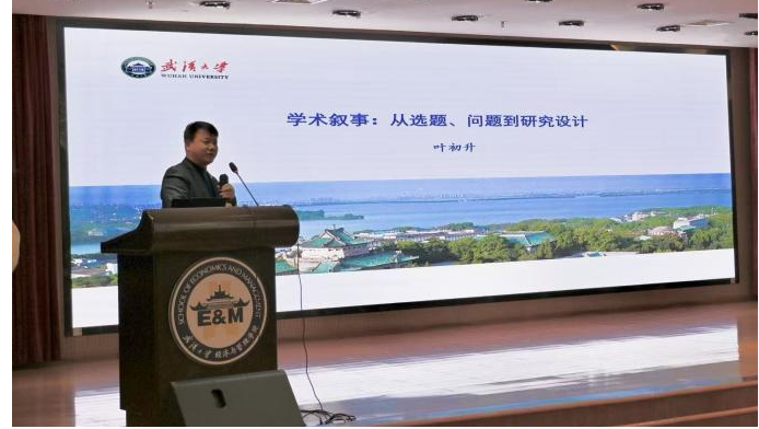 活動伊始,葉初升老師以“學(xué)術(shù)聲音‘要’講中國故事——從選題、問題到研究設(shè)計(jì)”為題作專題學(xué)術(shù)講座,他勸勉學(xué)生做研究需“疑于現(xiàn)象、慮之本質(zhì)、旨在新知”,強(qiáng)調(diào)學(xué)術(shù)價(jià)值的“微笑曲線”核心在于選題與現(xiàn)實(shí)啟示,指出專業(yè)思維、學(xué)術(shù)素養(yǎng)是AI時(shí)代的核心競爭力,并結(jié)合“政府補(bǔ)貼與企業(yè)創(chuàng)新”案例,生動闡釋從現(xiàn)實(shí)現(xiàn)象到理論創(chuàng)新的研究路徑。在現(xiàn)場互動環(huán)節(jié),葉初升老師圍繞中國經(jīng)濟(jì)研究選題與博士生們進(jìn)行深入交流,指導(dǎo)大家從現(xiàn)實(shí)問題與文獻(xiàn)缺口出發(fā),明確研究定位與學(xué)術(shù)貢獻(xiàn)。