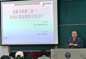 2025年11月19日,學院市場營銷與旅游管理系特邀南京郵電大學孫建敏研究員作“市場調查與分析大賽選題與方案設計”專題講座,分享選題方法和參賽經驗。本次講座于線上線下同步進行,一百余名來自不同學院、不同專業(yè)的本科參賽學生參加了講座。