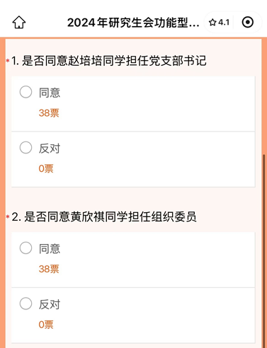 隨后進(jìn)行會(huì)議的第二項(xiàng)議程,進(jìn)行正式的換屆選舉。支委候選人分別進(jìn)行了競(jìng)選發(fā)言,逐一介紹了自己的工作經(jīng)歷、工作計(jì)劃以及未來(lái)愿景。候選人發(fā)言結(jié)束后,黨支部全體黨員進(jìn)行投票。根據(jù)投票結(jié)果,超過(guò)半數(shù)黨員同志同意趙培培、黃欣祺、劉宸希、趙萱四位同志擔(dān)任經(jīng)濟(jì)與管理學(xué)院研究生會(huì)功能型黨支部支部委員。根據(jù)報(bào)名情況、個(gè)人經(jīng)歷和投票情況最終新一屆經(jīng)濟(jì)與管理研究生會(huì)功能型黨支部由趙培培擔(dān)任黨支部書(shū)記,黃欣祺擔(dān)任黨支部組織委員,劉宸希擔(dān)任黨支部紀(jì)檢委員,趙萱擔(dān)任黨支部宣傳委員。四位支部委員對(duì)黨支部的未來(lái)發(fā)展方向與活動(dòng)規(guī)劃進(jìn)行了溝通交流。